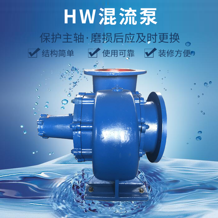 HW混流泵(bèng)由泵蓋、葉輪(lún)、泵體、軸套、軸(zhóu)、軸承體部件(jian)等組成。